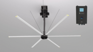 HVLS Fan (High Volume Low Speed Fan) adalah kipas berdiameter besar yang berfungsi memindahkan udara dalam jumlah besar dengan kecepatan rendah. Teknologi ini mampu memberikan sirkulasi udara merata di ruangan berukuran luas, seperti pabrik, gudang, hingga gedung olahraga.